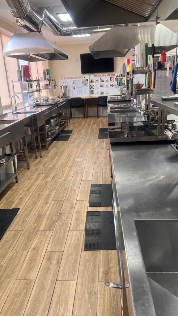 Для створення навчально-тренувального центру придбано кухонне обладнання, інвентар, посуд, меблі для забезпечення лабораторії з підготовки професій громадського харчування, встановлено вентиляцію, кондиціювання та прокладено силовий кабель для забезпечення належного електропостачання.